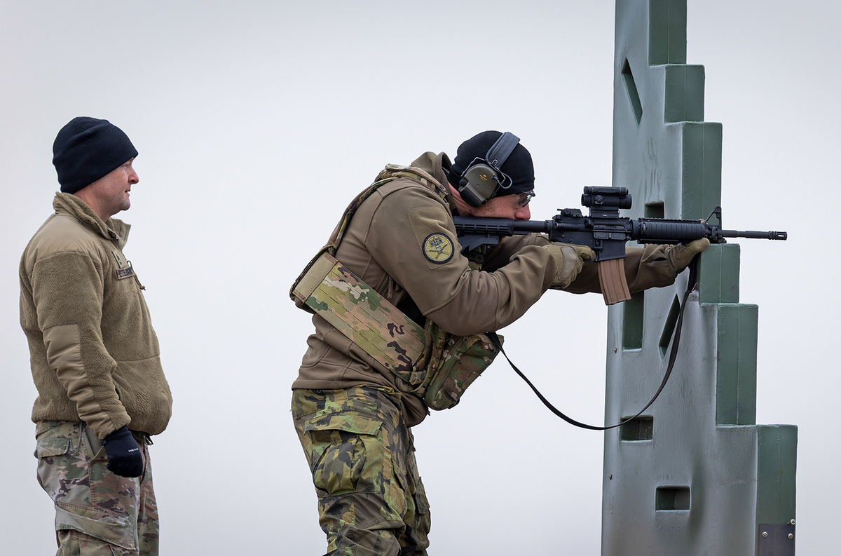 střelba z pistole M17 a útočné pušky M4 na přesnost i vzdálenost,